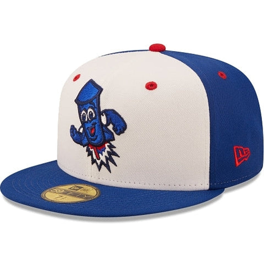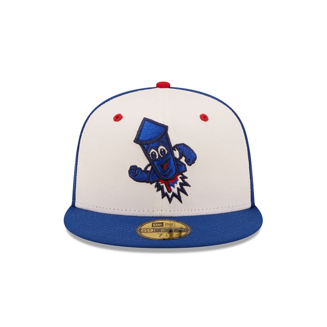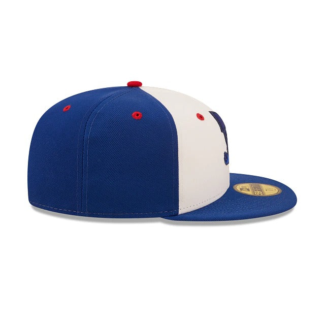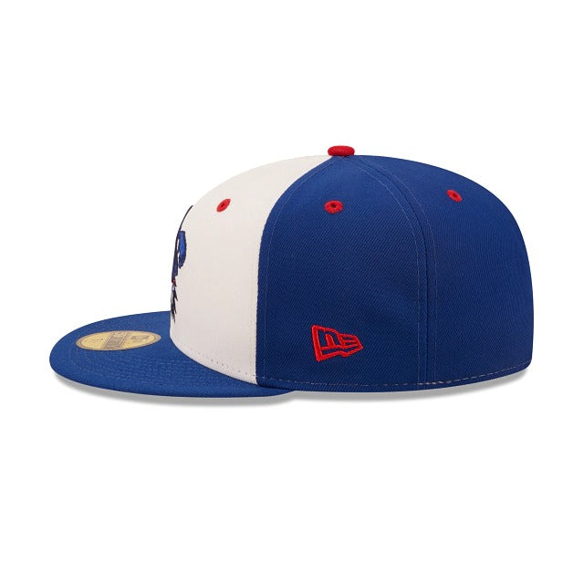 The Worcester Red Sox Copa de la Diversion 59FIFTY Fitted Cap features an embroidered Copa De La Diversion themed Red Sox logo at the front panels with a matching MiLB Batterman logo at the rear.