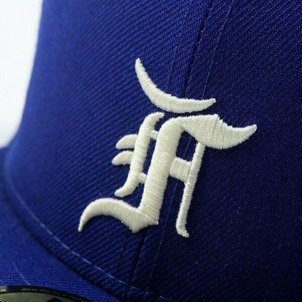 This New Era Fear of God 59FIFTY fitted hat has a royal blue and white colorway. The six panel structured high crown and flat bill of the fitted cap is royal blue. The front panel features the Fear of God lettermark in white embroidered thread. Created in collaboration with the LA brand Fear of God, this MLB cap is the perfect gift for any baseball fan. Inspired by Jerry Lorenzos’ father’s professional baseball career, this cap is part of Fear of God’s 5th collection.