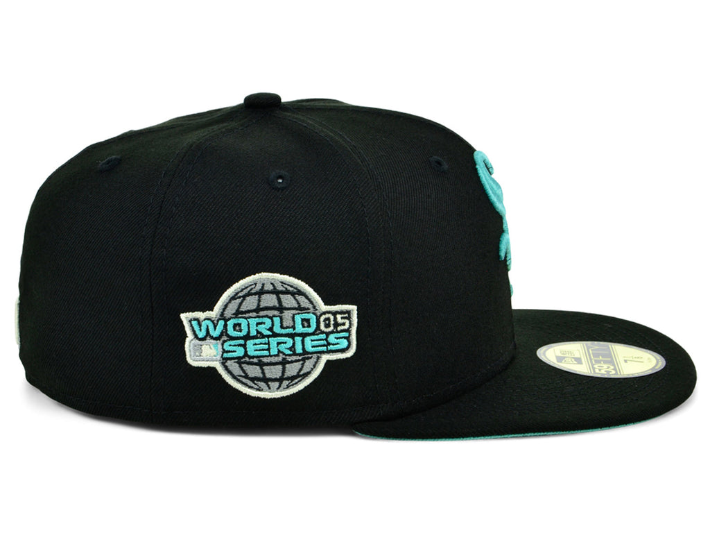 Celebrate your favorite team with this Chicago White Sox MLB Color UV 59FIFTY Black Mint cap. This dark New Era cap has a high structured crown that sports the minty logo, a dynamic patch and embroidered accents to match. This cap will never be understated.