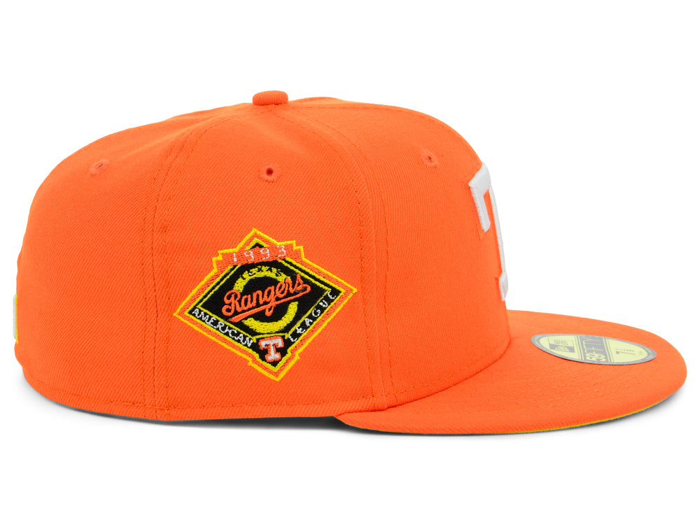 This dazzling cap will easily be the highlight of your collection as the Texas Rangers 59FIFTY Candy Corn fitted cap is designed to be noticed. This structured New Era cap has a team logo that really pops.