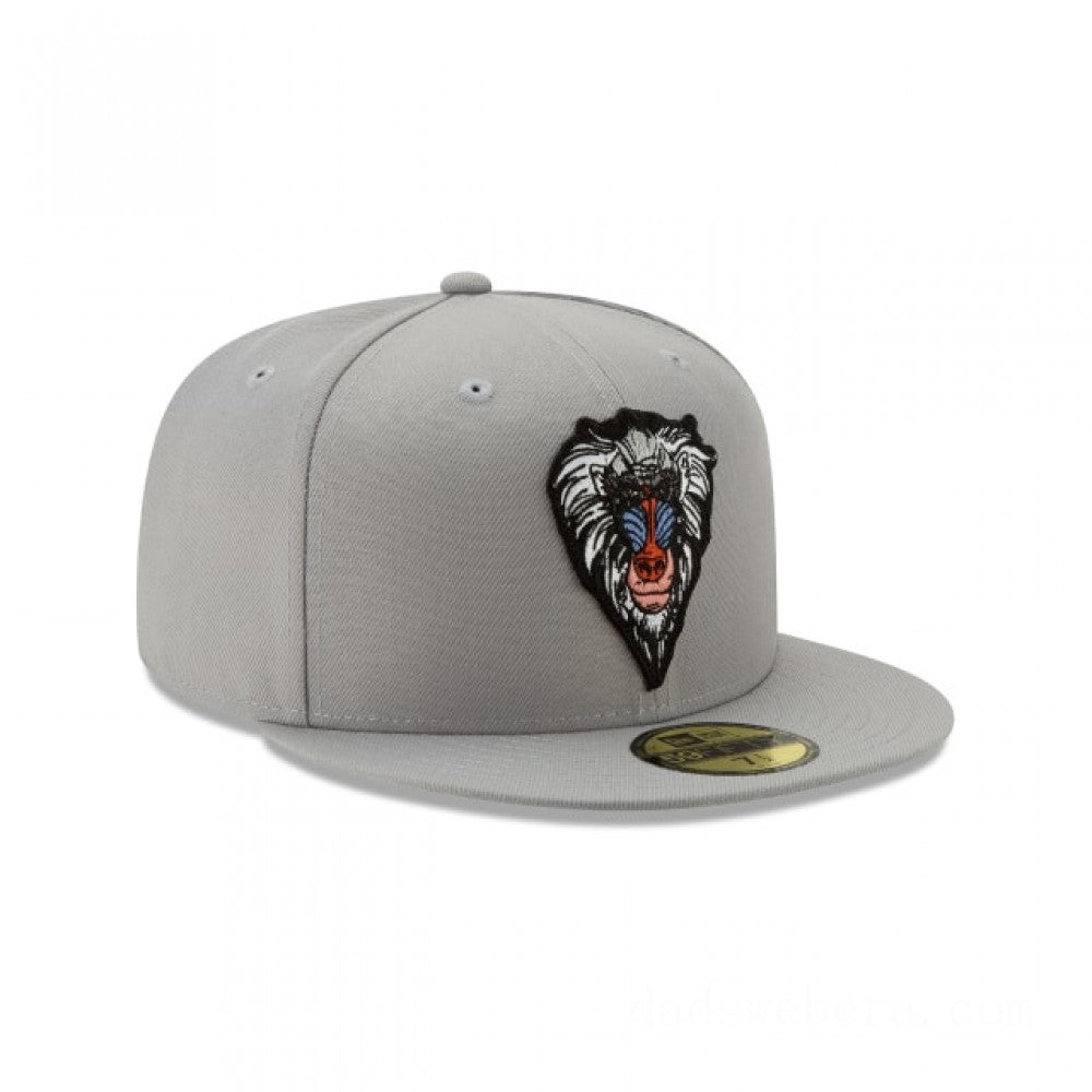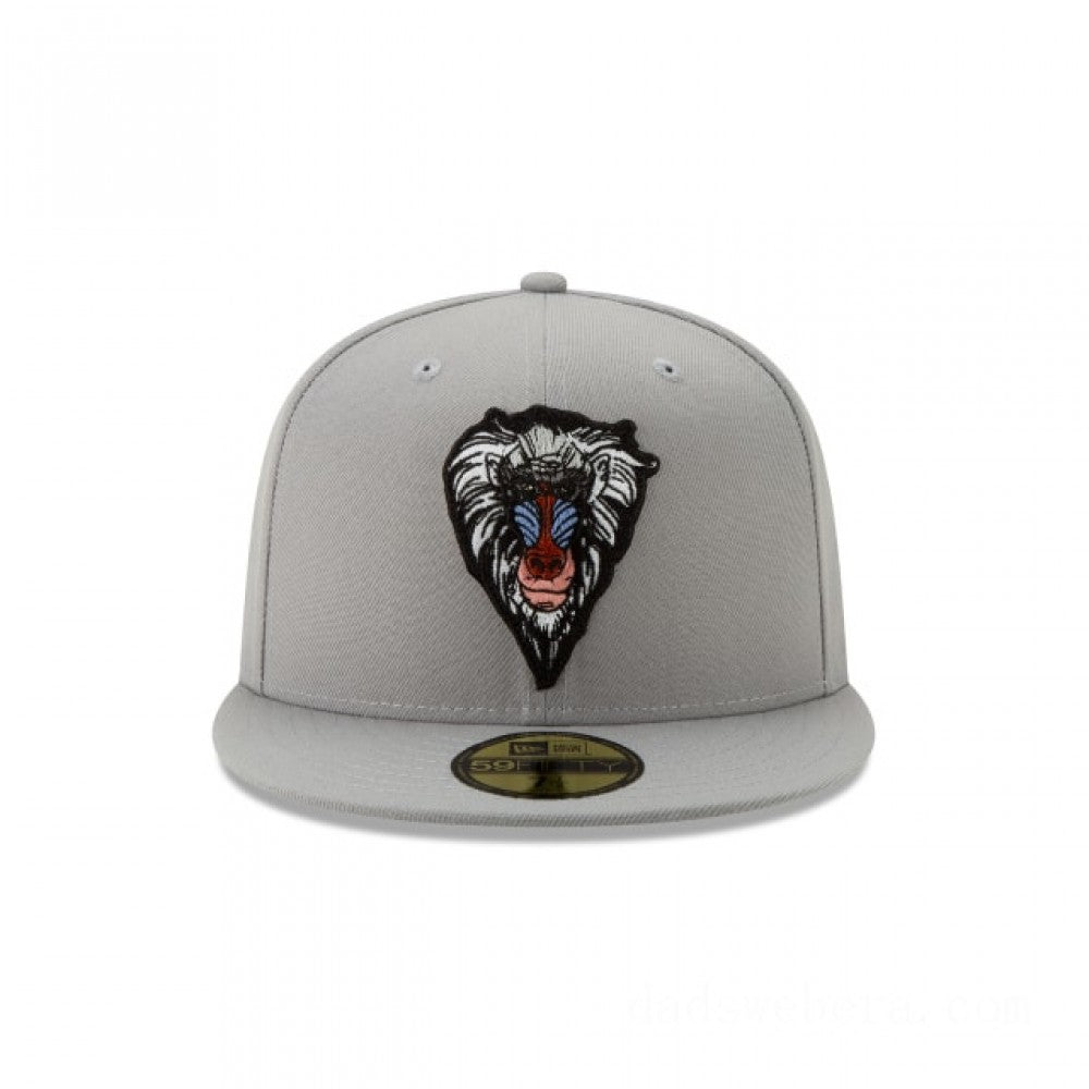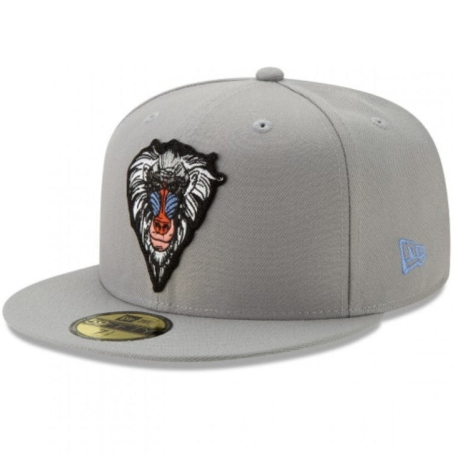 The Lion King Rafiki 59FIFTY Fitted Cap features Rafiki’s face embroidered at the front panels and a tonal the Lion King wordmark at the rear. Additional details include a safari-inspired print found on the undervisor with a grey six panel structured high crown, embroidered eyelets, fabric squatchee button and flat visor.