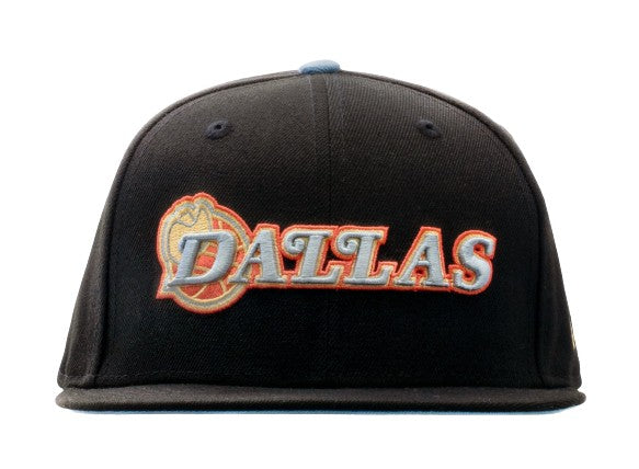 This New Era Dallas Mavericks NBA Summer Edition 59FIFTY fitted hat is a Shoe Palace exclusive. It has a black six panel structured high crown, and embroidered eyelets with a light blue fabric squatchee button. The fitted cap also has a black flat bill with a light blue undervisor and black sweatband. The front panel features the Dallas Mavericks logo embroidery. The left panel of the fitted displays the New Era logo and the official NBA logo embroidery on the rear crown.