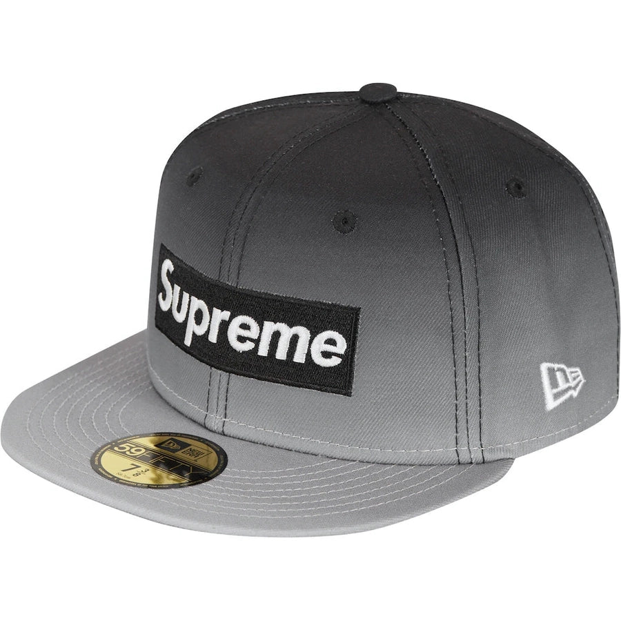 This New Era x Supreme 59FIFTY fitted hat has a black and white gradient six panel structured high crown, embroidered eyelets and flat bill. The right panel of the fitted features a Supreme XCIV side patch and the script "World Famous" on the rear-crown.