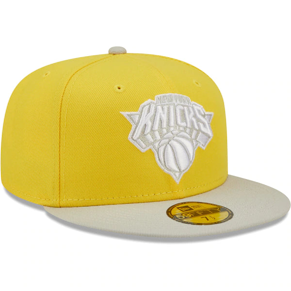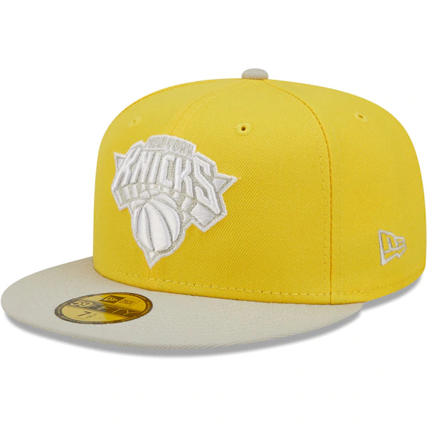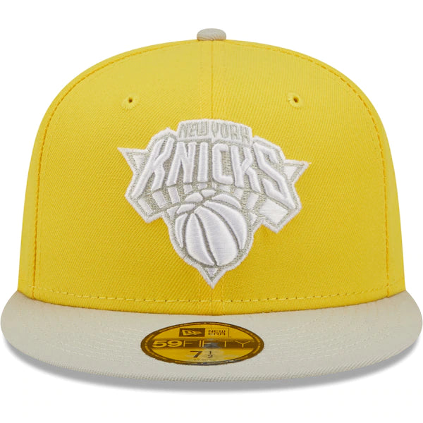 Get your head in the game whenever you sport this New York Knicks Color Pack 59FIFTY hat from New Era. Its sharp graphics and bold two-tone design ensure your die-hard team pride is unquestionable. This cap is also built with a high crown, fitted closure and flat bill to give you a trendy option to support your New York Knicks.