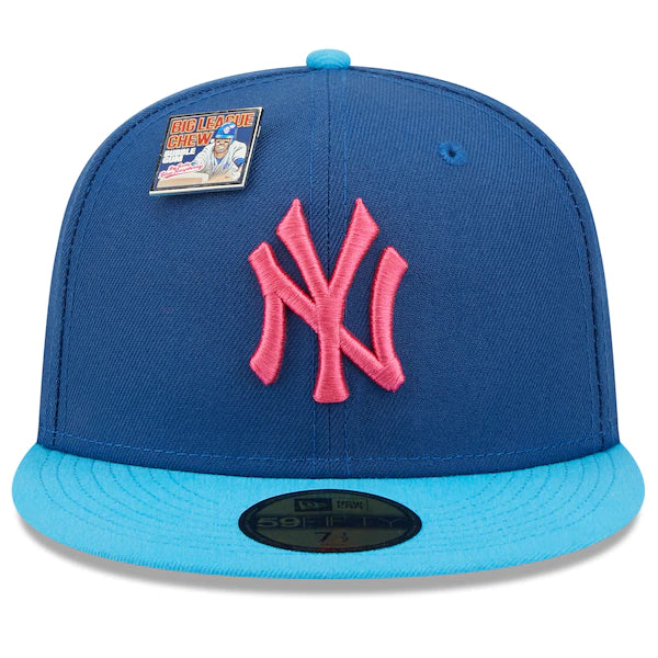 The MLB and Big League Chew have teamed up to bring New York Yankees fans this one of a kind, Big Rally Blue Raspberry Flavor Pack 59FIFTY Fitted Hat. Featuring a high crown and flat bill, this New Era hat will take your game day look to the next level. Its classic and fun graphics combine your New York Yankees and your all-time favorite Big League Chew flavor, making it unlike anything else in your collection.