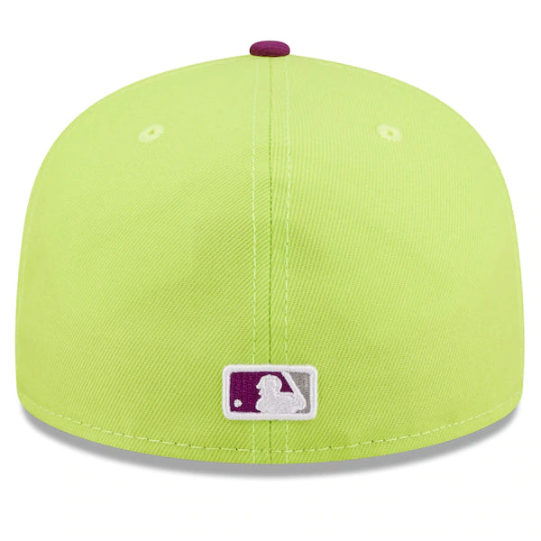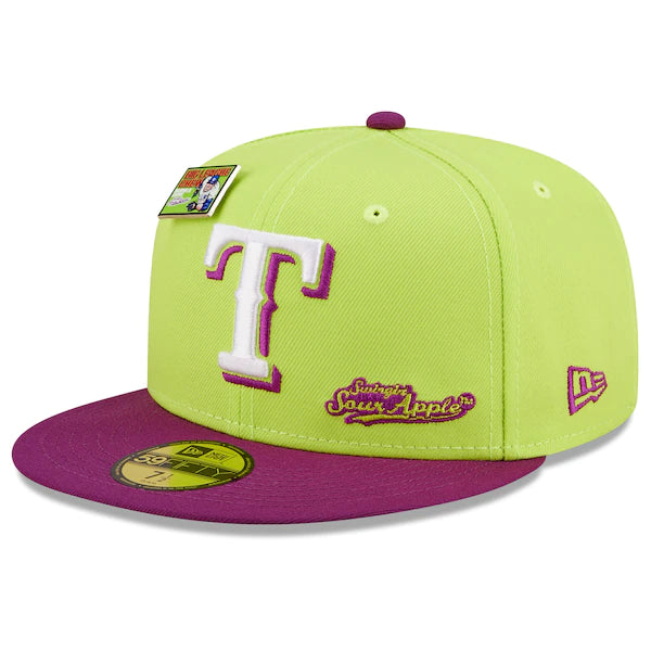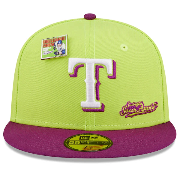 The MLB and Big League Chew have teamed up to bring Toronto Blue Jays fans this one of a kind, Swingin' Sour Apple Flavor Pack 59FIFTY Fitted Hat. Featuring a high crown and flat bill, this New Era hat will take your game day look to the next level. Its classic and fun graphics combine your Toronto Blue Jays and your all-time favorite Big League Chew flavor, making it unlike anything else in your collection.